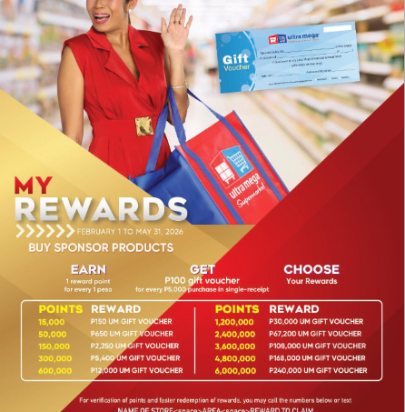 Buy P 3,000 worth of Lady’s Choice of any size and variant, and get P 200 UM Cash Voucher.