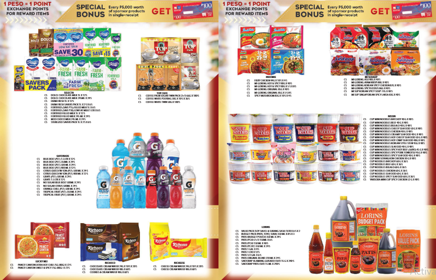 Buy P 12,000 worth of P & G products and get 1 case of Lucky Me Beef Noodles 55g.