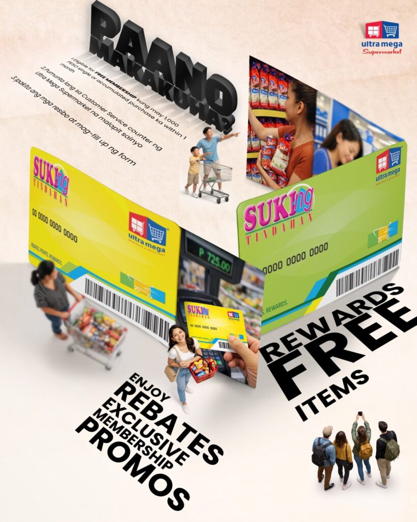Gamit ang Suki Card sa Ultra Mega Supermarket, bawat bili ay Mega Sulit mas tipid sa budget, mas sulit sa pang-araw-araw na pangangailangan, at laging may extra saya sa bawat shopping trip!